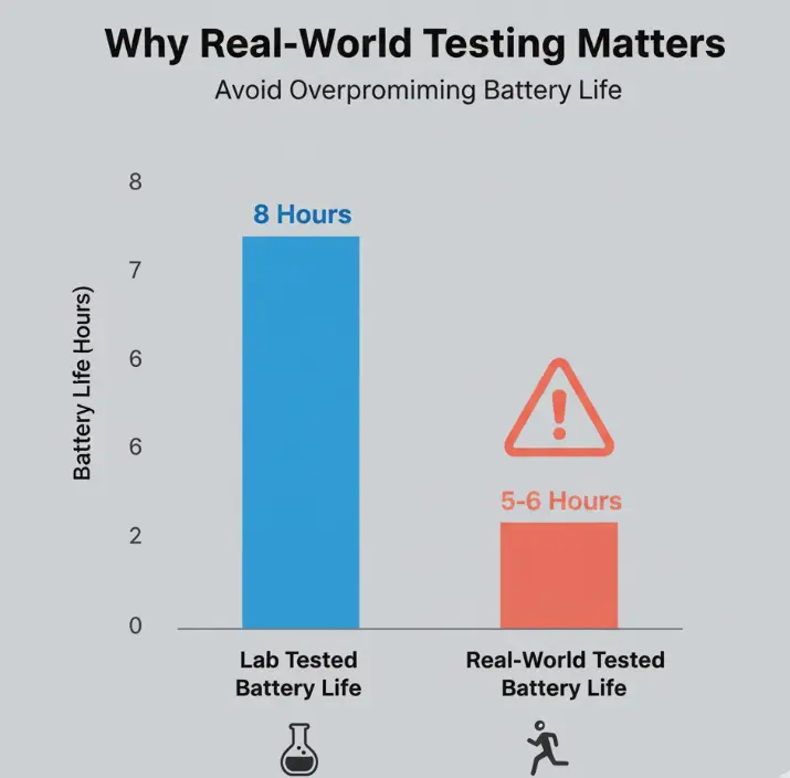 A client wanted to promise 8 hours of playtime for their travel TWS earbuds. Lab testing showed 8 hours, but field testing (users listening to music on planes, with Bluetooth dropping occasionally) showed 6.5 hours. We adjusted the promise to 6 hours—their return rate was just 2% (well below the industry average of 8%).